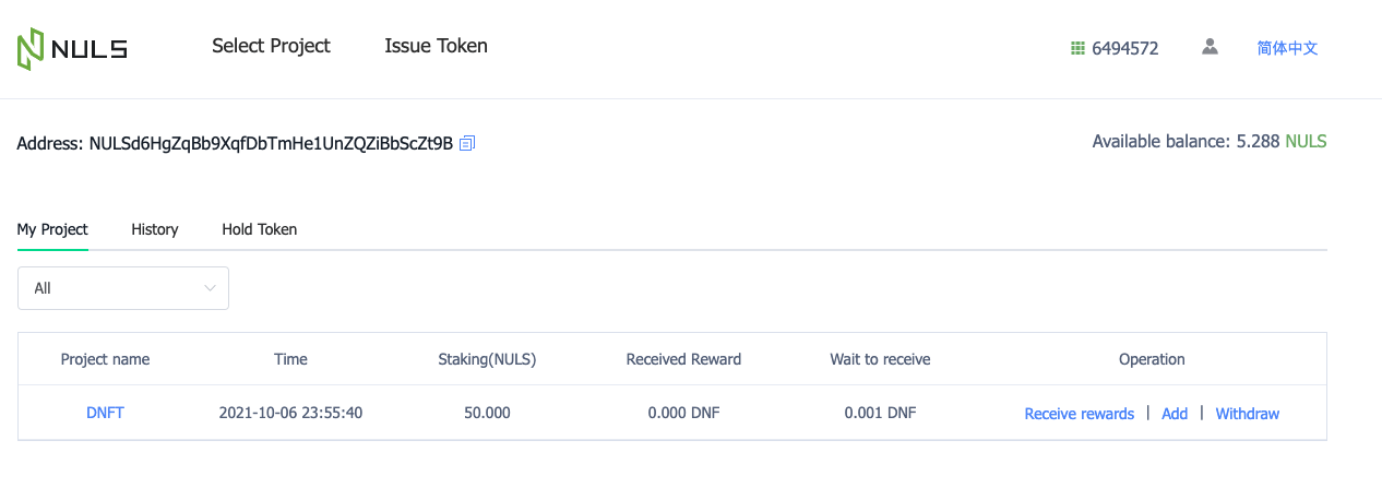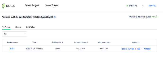 - Your staking information will be displayed using the My Project option. After staking, you may need to wait a few minutes for the information to be displayed.