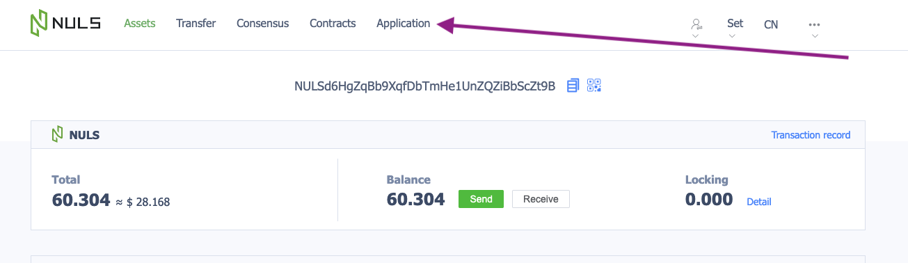 - After successfully importing your NULS account, select Application.