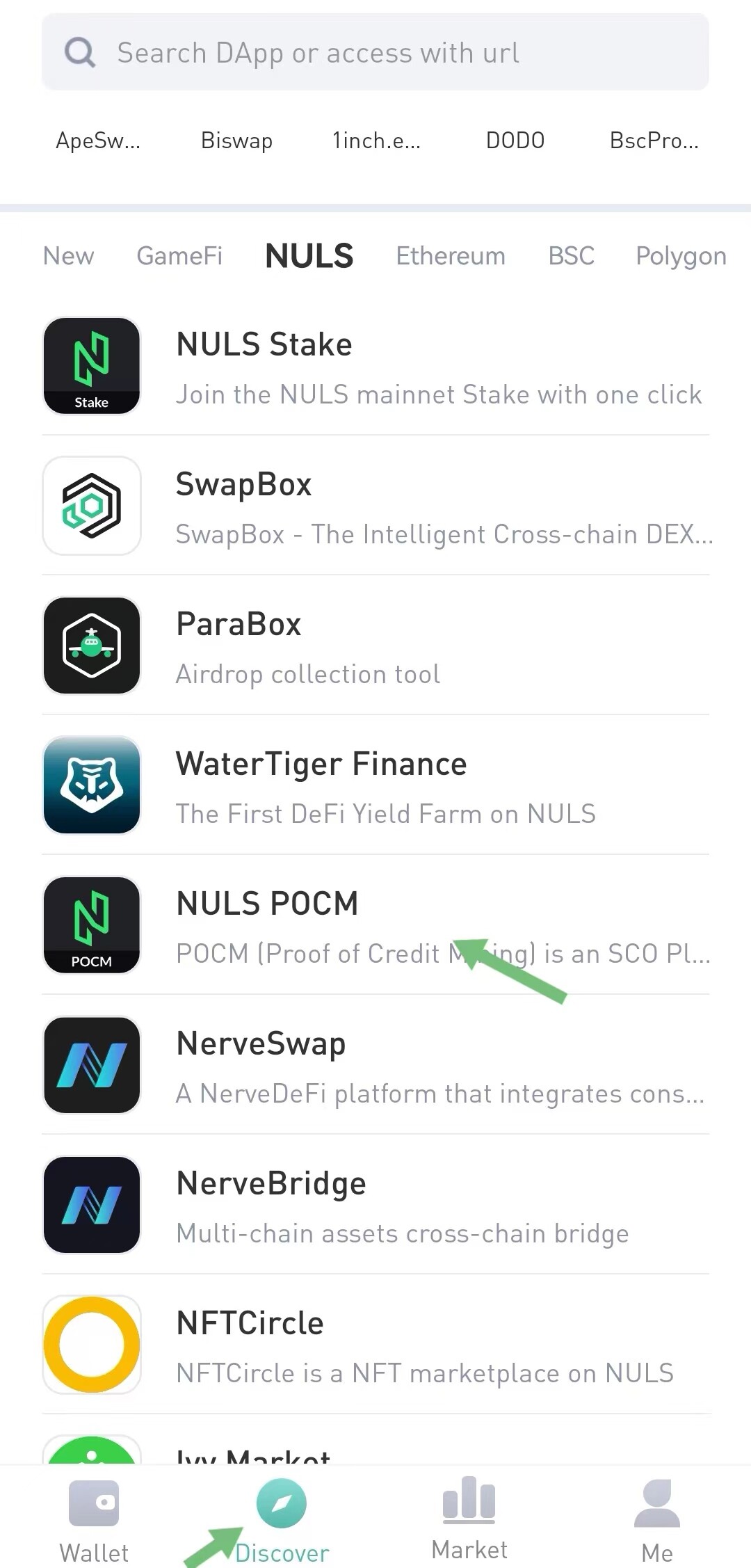 Click “Discover” to search for NULS POCM DApp